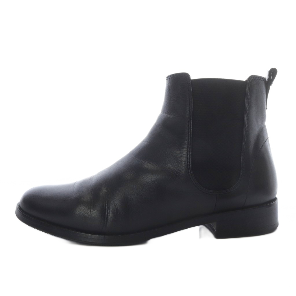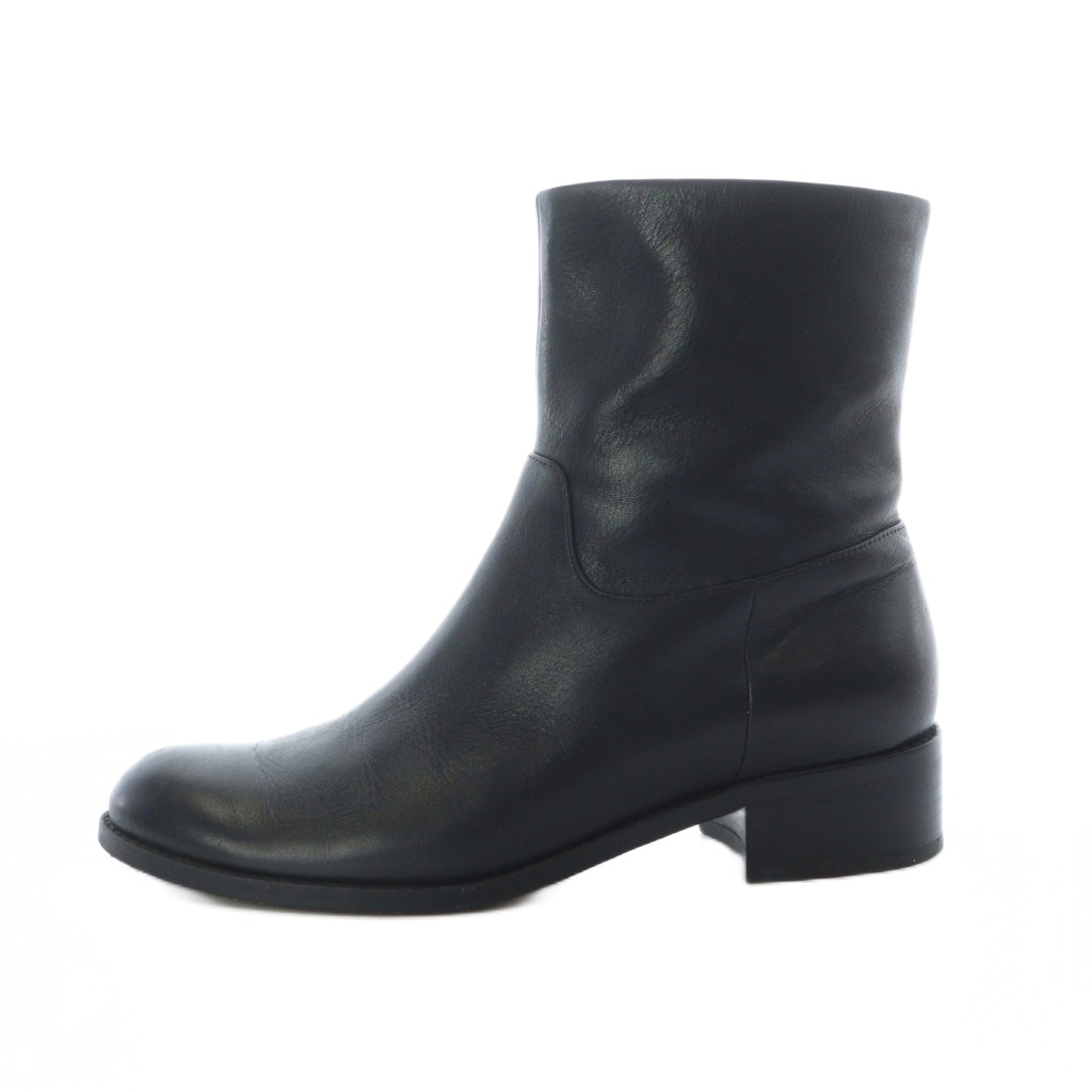 レザー アーモンドトゥ チャンキーヒール サイドゴアブーティー
