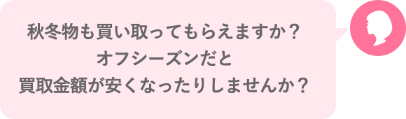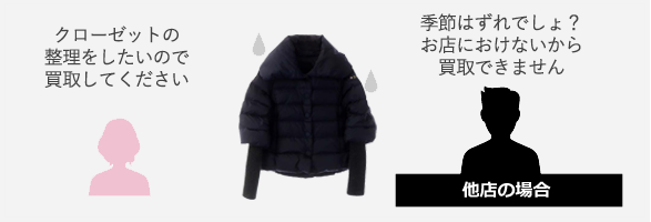 クローゼットの整理をしたいのに、 「オフシーズン物は在庫として持ちたくないから」というお店の都合で買取できなかったり、買取金額が安くなることに納得できますか?